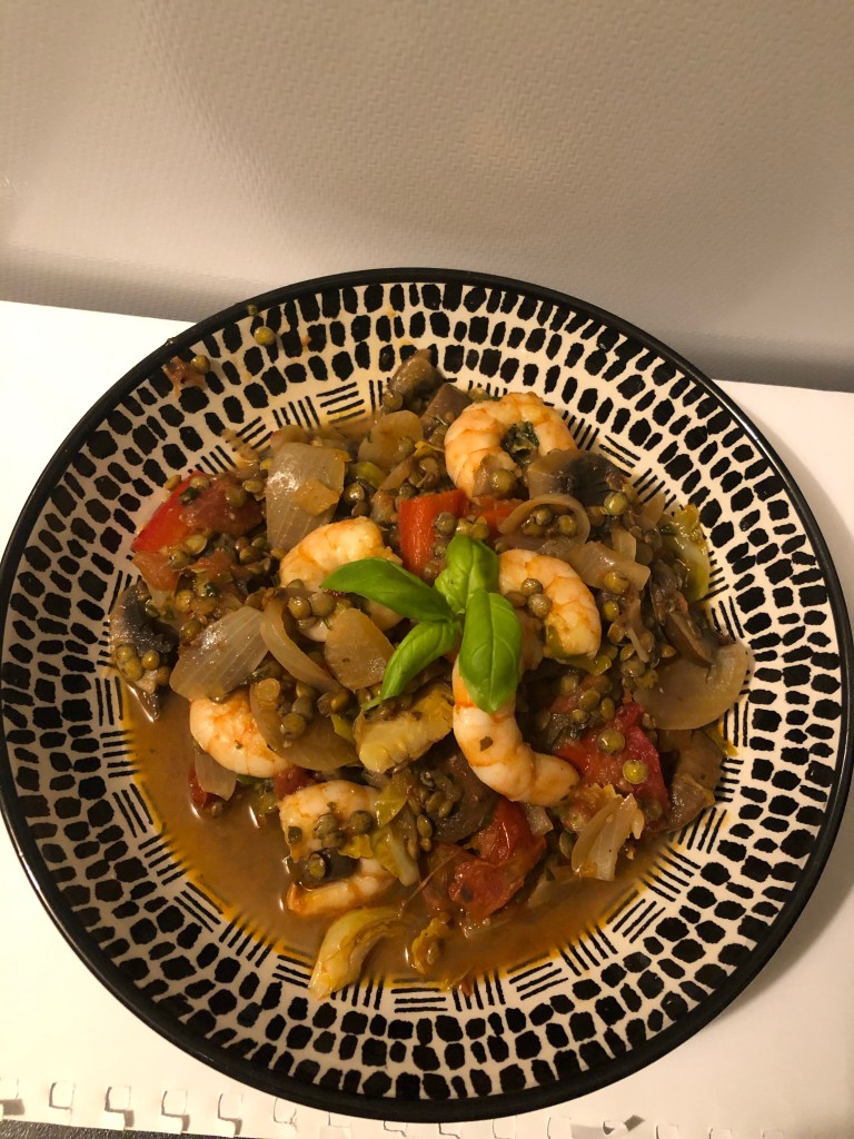 Prawn, Mushroom, Sun Dried Tomato Lentils