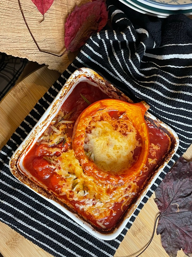 - Simply wash the pumpkin and cut in half, you can either cook the pumpkin in a separate tray and then add to the sauce, or cook in the sauce. The above picture shows one serve.