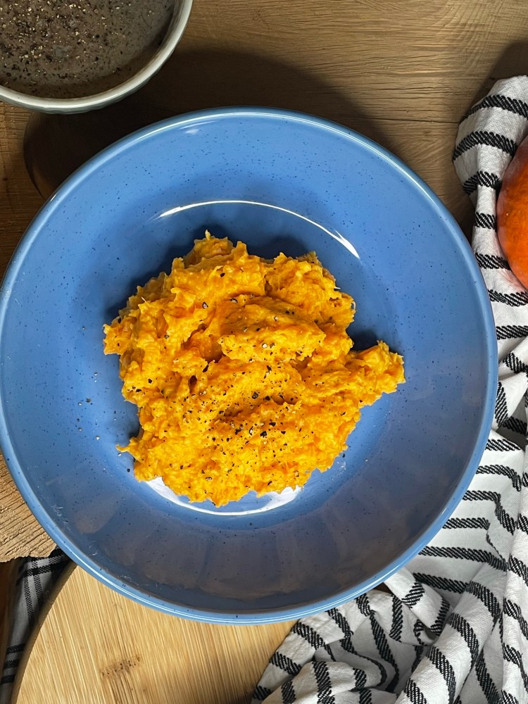 Really quick and easy mash, I did roast the pumpkin, as I did a roasted vegetable batch, so already had some in the fridge, but you can just boil it. There is a bit more flavour when you roast it though. This was 1 serve (does eating half of it and only serving half count!!)